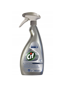 Cif Pro Formula Stainless Steel Spray to specjalistyczny preparat do czyszczenia stali nierdzewnej i innych twardych powierzchni wodoodpornych. Skutecznie usuwa zabrudzenia, tłuste plamy oraz odciski palców, przywracając powierzchniom estetyczny połysk. Idealny do kuchni, sprzętów gastronomicznych i wszystkich miejsc, gdzie ważna jest higiena i estetyka.